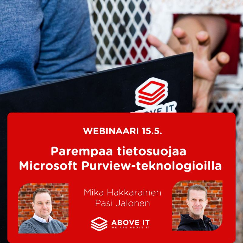 Puhujina tässä webinaarissa olivat Above IT ’consiglieret’ Mika Hakkarainen ja Pasi Jalonen. Jos webinaari jäi sinulta väliin, täytä kaavake alla ja jätä yhteystietosi, niin saat paluupostissa suoran linkin webinaaritallenteeseen!